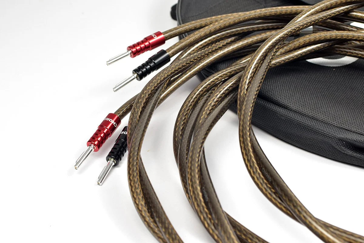 Durante muchos años, hemos estado utilizando conductores de cobre enchapados en plata en nuestros diseños. Nuestros diseños enchapados en plata se emparejan con conectores enchapados en ChorAlloy™. El uso de plata en cables puede ser malinterpretado, ya que muchas personas aún asocian el uso de plata con una característica de sonido brillante y abrumadora. En nuestra experiencia, sin embargo, este brillo es causado en realidad por una mala elección del material de aislamiento ¡más que por la plata!"